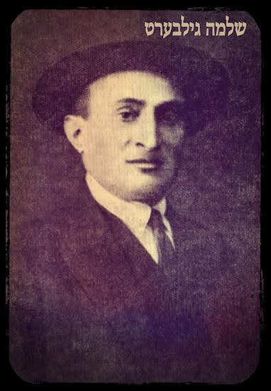 He was born in Radzymin, near Warsaw, Poland. When still a young lad, his parents moved to Warsaw, but he remained in Radzymin with his grandfather, R. Yoysef Gimpl, who was at one time a Nikolaevsky soldier [one who had served under Tsar Nikolai I, usually for twenty-five years] who had for many years lived in Kavkaz, and in general was a Jew with a distinctive life story. Shloyme thus stayed behind to study at the Radzymin rabbi’s synagogue study hall, and later even devoted himself to mysticism and spiritualism. He was also musical—an attribute he inherited from his father and his grandfather. At age sixteen or seventeen, he moved to Warsaw. He began writing in 1905, but none of these works were published. In 1907 for the first time, he published in the collection Nay-tsayt (New times) two moody pieces, “Tsu der zun” (To the sun) and “In shtot” (In the city), and in the collection Der yunger gayst (The young spirit) (Warsaw, 1908) a poetic sketch entitled “Fun land shvindzukht” (From the land of tuberculosis). These first pieces all drew the attention of the critics (Shmuel Niger, in Der nayer veg [The new way] 8-9, Vilna, 1907), and from that point forward he published sketches and short stories in: Roman-tsaytung (Fiction newspaper), Haynt (Today), Unzer lebn (Our life), Der fraynd (The friend), Literarishe bleter (Literary leaves), Naye folkstsaytung (New people’s newspaper), all in Warsaw; and Tsukunft (Future) and Forverts (Forward) in New York. His first collection of stories, Noveln (Stories), appeared in Warsaw in 1922, published by the literary fund of the Warsaw association of authors and journalists, 142 pp. Subsequent books included: Meshiekhs trit, dramatishe poeme in dray aktn (Messiah’s steps, a dramatic poem in three acts) (Warsaw, 1924), 42 pp., translated into Hebrew by A. L. Yakubovitsh in Hatekufa (The epoch) 7; Der keler (The basement), a comedy in three acts (Warsaw, 1927), initially published in Tsukunft in New York (June 1925); Dertseylungen un drames (Stories and dramas), “with a biographical-critical introduction by Sh. Niger and with remembrances by [the writer’s brother] Pinkhes Gilbert and Meylekh Grafshteyn” (Toronto, 1954), 336 pp. He was, according to M. Ravitsh, the most interesting personality around Warsaw’s [Jewish Literary Association at] “13 Tłomackie Street.” During the Hitler era, he was confined to the Warsaw Ghetto, where he suffered from hunger and want; he continued to write and was active in the Jewish cultural organization, “IKOR” (Yidishe kolonizatsye organizatsye in rusland). In August 1942 he was deported to Treblinka and murdered there. From Yiddish Lekikon.